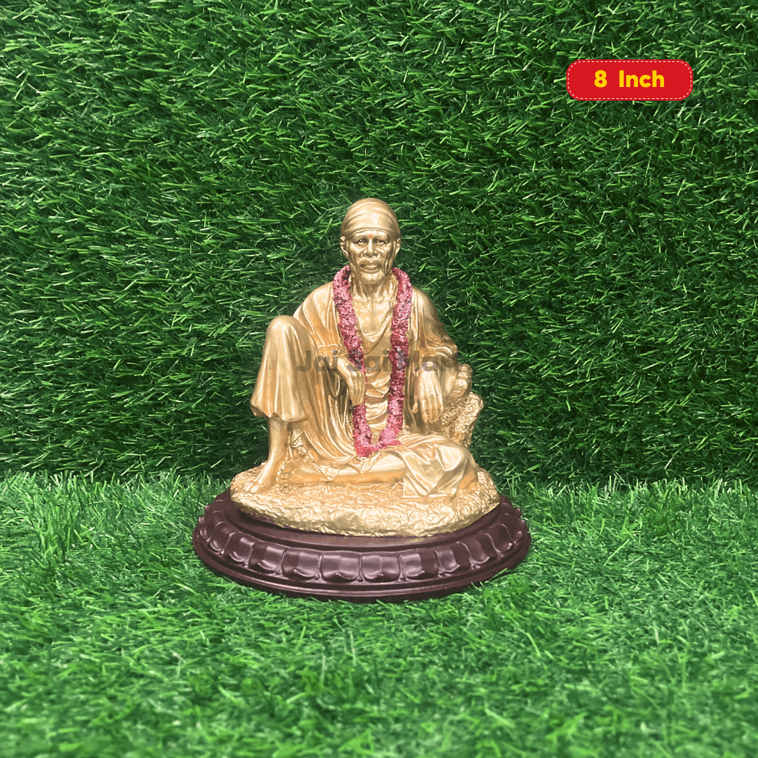 #1. Sai Baba Idol: Lord Sai Baba Golden Polyresin Statue is a beautifully crafted piece made from high-quality polyester resin, showcasing fine detailing and elegant workmanship.